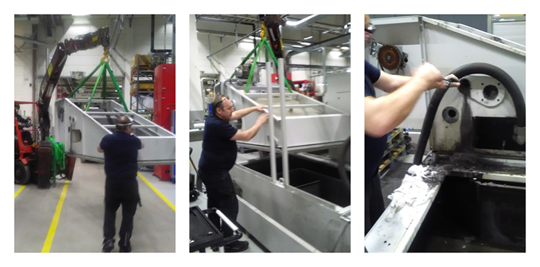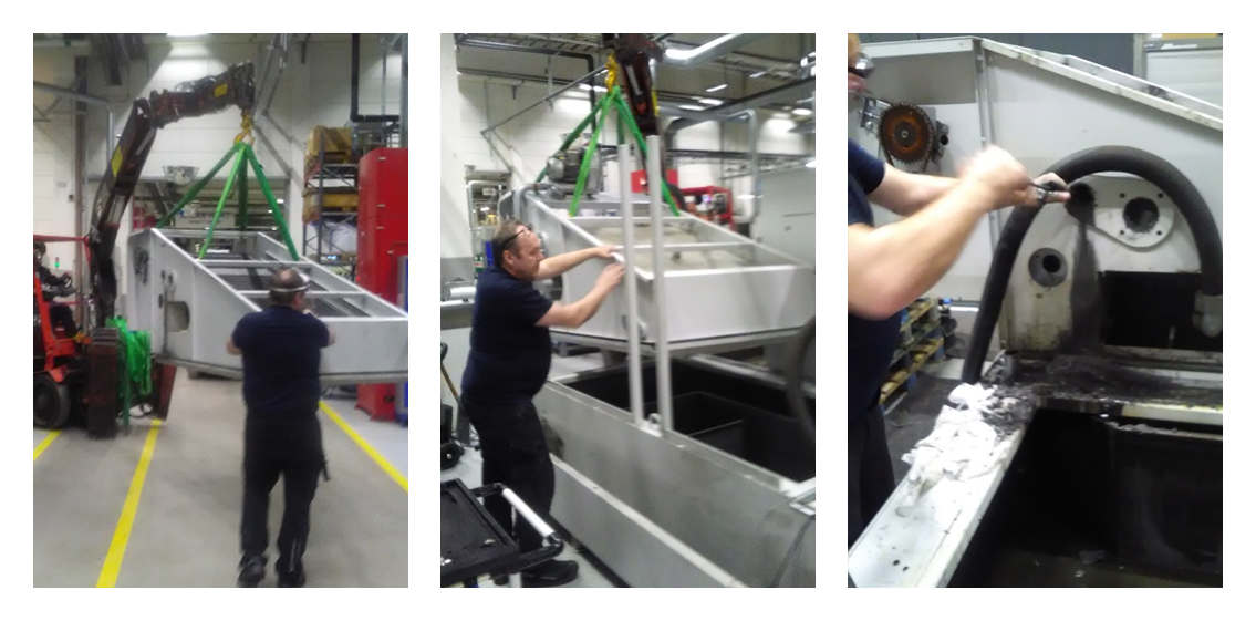 Demontering av Hoffmann filterkassett och transport till tvätt och byte av slitdelar.