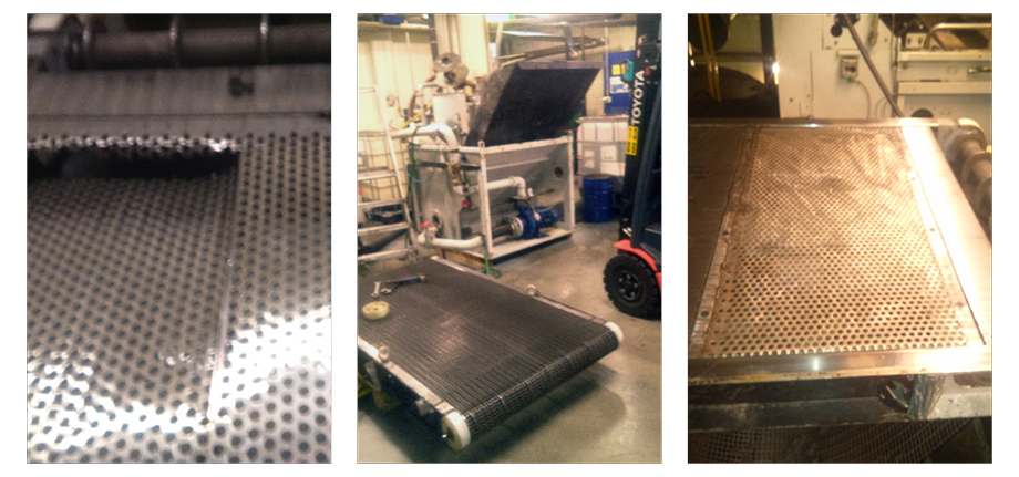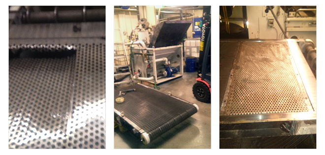 Här har kund haft problem med hög åtgång på filterduk. Felet visade sig vara den så kallade hålplåten var så sliten att den separerat, ny plåt monteras och filtret blev som nytt.